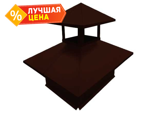Дымник на трубу двойной 520х390мм 0,5 GreenCoat Pural BT с пленкой RR 887 шоколадно-коричневый (RAL 8017 шоколад)