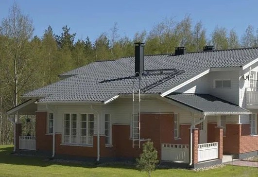 Металлочерепица Ruukki Elite Pur Matt изготавливается методом горячего оцинкования. За основу берутся стальные листы стандартной толщины 0,5 мм, которые в процессе специальной обработки приобретают дополнительную прочность и жесткость. Это делает их стойкими к воздействию большинства негативных факторов среды, включая осадки, солнечные лучи, ветровые нагрузки. Матовое полимерное покрытие создает красивый эффект на поверхности, визуально подчеркивает эстетику кровли. Толщина защитного слоя составляет 50 мкр, этого достаточно, чтобы защитить профили от царапин и механических повреждений. К неоспоримым преимуществам серии относится то, что металлочерепица Ruukki Elite Pur Matt имеет гарантированный производителем срок эксплуатации, достигающий 25 лет.