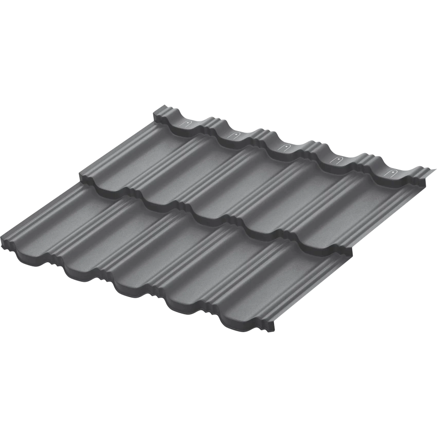 Металлическая модульная черепица Гётеборг Имеет уникальный современный профиль. Ключевым преимуществом металлической модульной черепицы AQUASYSTEM является скрытое крепление листов к обрешётке, что позволяет добиться непревзойдённой надёжности кровли и повышенной эстетики. Увеличенная высота ступени (до 30 мм) придаёт повышенную жёсткость и более объёмный внешний вид кровле.