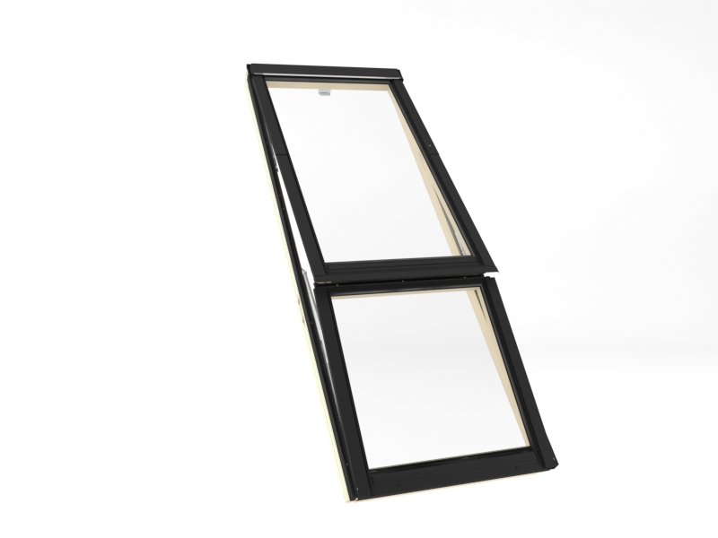 Окно-балкон FAKRO FGH-V P2 Galeria – двустворчатое мансардное окно, верхняя створка которого может открываться независимо от нижней, выполняя функции обычного окна для крыши, а при открывании нижней створки образуется дополнительное пространство, и окно трансформируется в балкон.