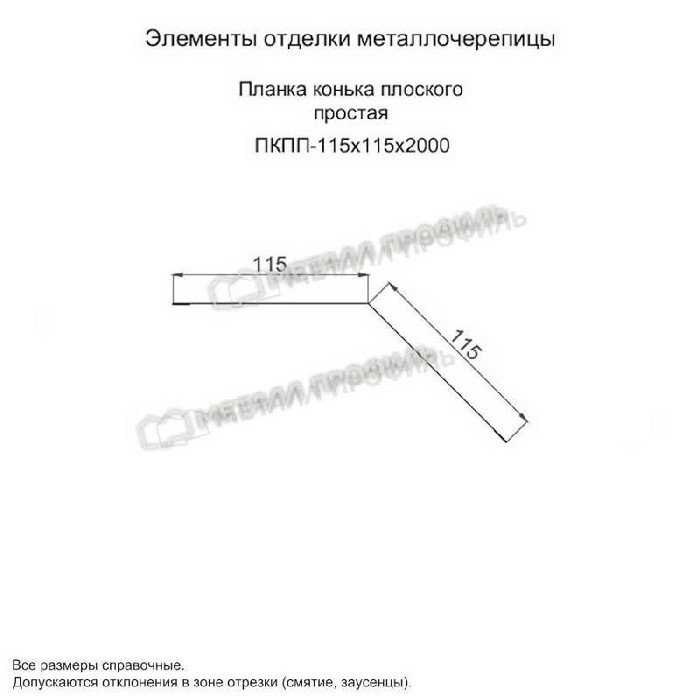 Планка конька плоского простая Металл Профиль