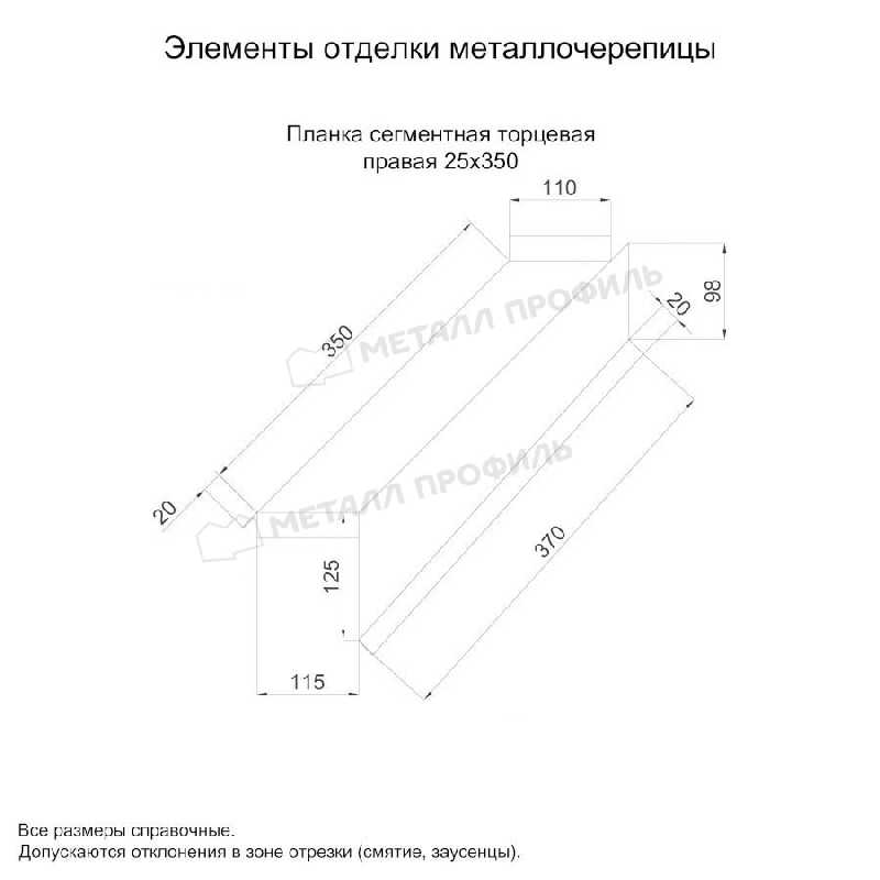 Планка сегментная торцевая правая 350 мм (PURMAN-20-8017-0.5)
