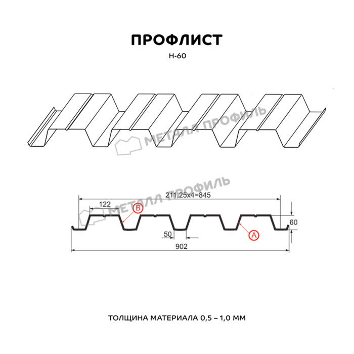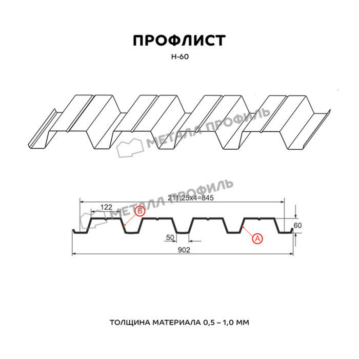 Профлист Н-60 для кровли Металл профиль