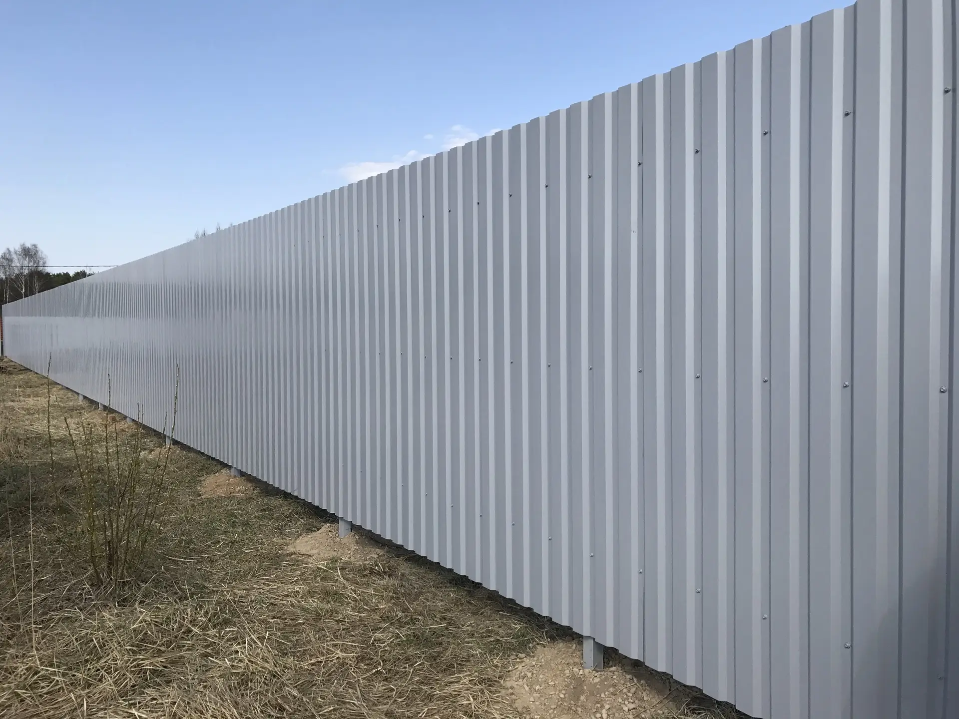 Цвет профлиста - серо-белый (RAL 9002), который отлично сочетается с различными архитектурными стилями и цветовыми решениями.