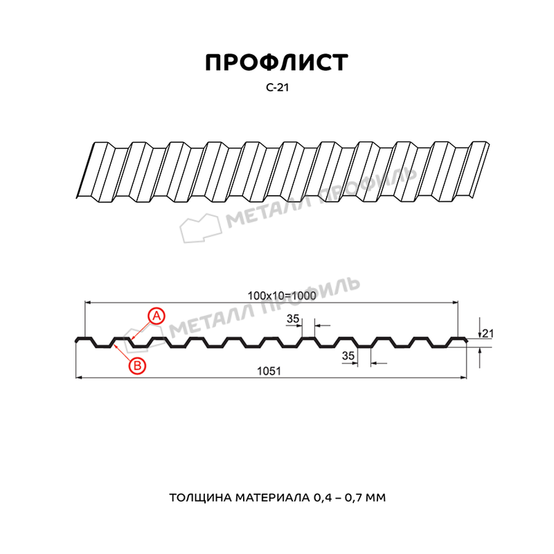 Профиль С-21 VikingMP® имеет толщину 0,45 мм, что обеспечивает прочность и долговечность конструкции.