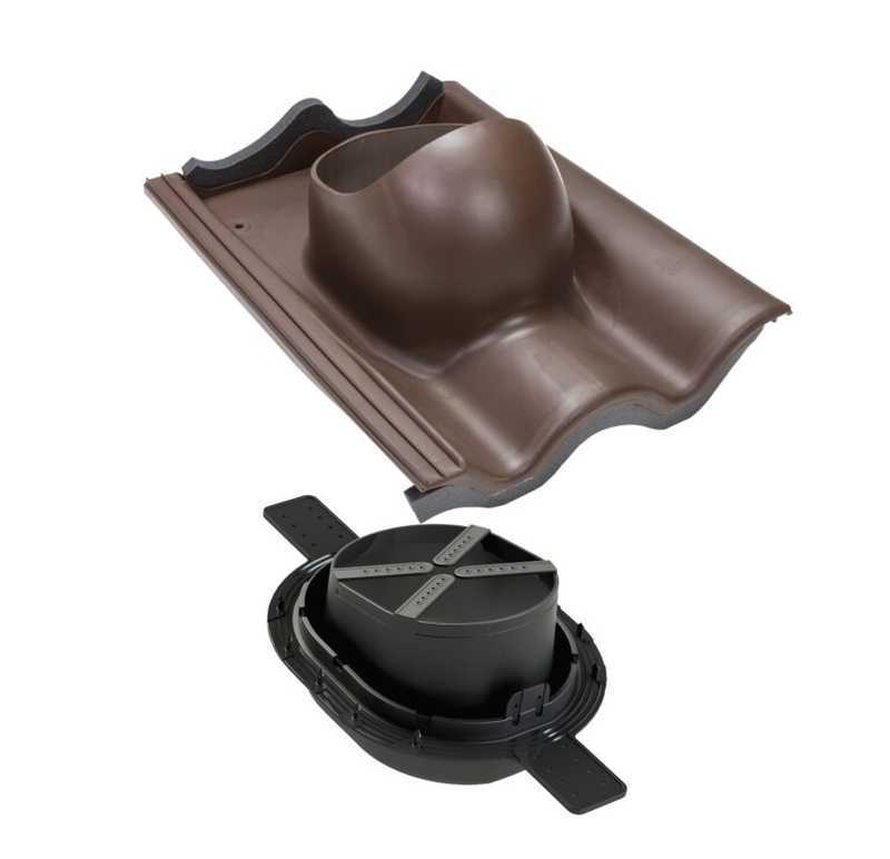 Проходной элемент для цементно-песчаной черепицы. Заменяет одну двухволновую черепицу шириной 330 мм и высотой волны 27 -40 мм. В комплект входит двухкомпонентный 2K -уплотнитель гидрозатвора, гарантирующий полную герметичность прохода через гидрозащитную пленку. Устанавливается при монтаже и на готовую кровлю.