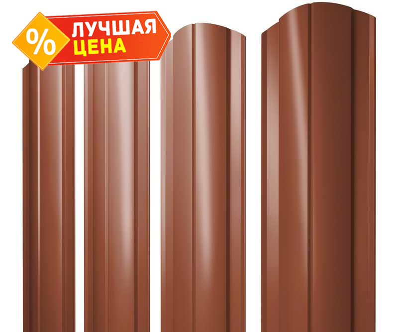Штакетник Круглый фигурный Grand Line 0,45 Drap ST RAL8004 Терракота