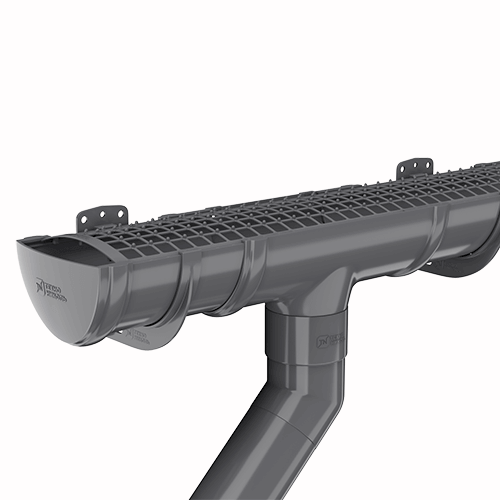 В состав системы входят все необходимые доборные элементы для организации полноценного отведения дождевой и талой воды с крыш и навесов.
